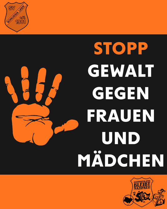 Wir als Borussia Leer wollen, dass alle Frauen und Mädchen die Möglichkeit und vor allem das Recht haben, in allen Bereichen ihres Lebens sicher zu sein.