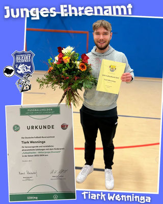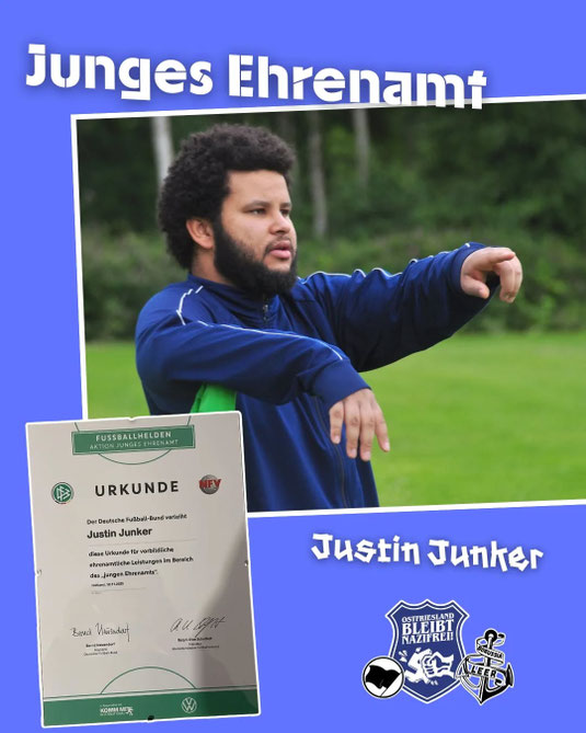 Borussias aktiven Mitgliedern Justin Junker, Philipp Baumann und Ivan Paios wurde am Ehrenamtstag des NFV Ostfriesland "für vorbildliche ehrenamtliche Leistungen im Bereich des jungen Ehrenamts" die entsprechende Urkunde verliehen. Tiark Wenninga wurde "für herausragende und vorbildliche ehrenamtliche Leistungen mit dem Förderpreis Fußballhelden - Aktion junges Ehrenamt" ausgezeichnet. Zudem wurde allen Vieren ein Fußballtrikot überreicht.